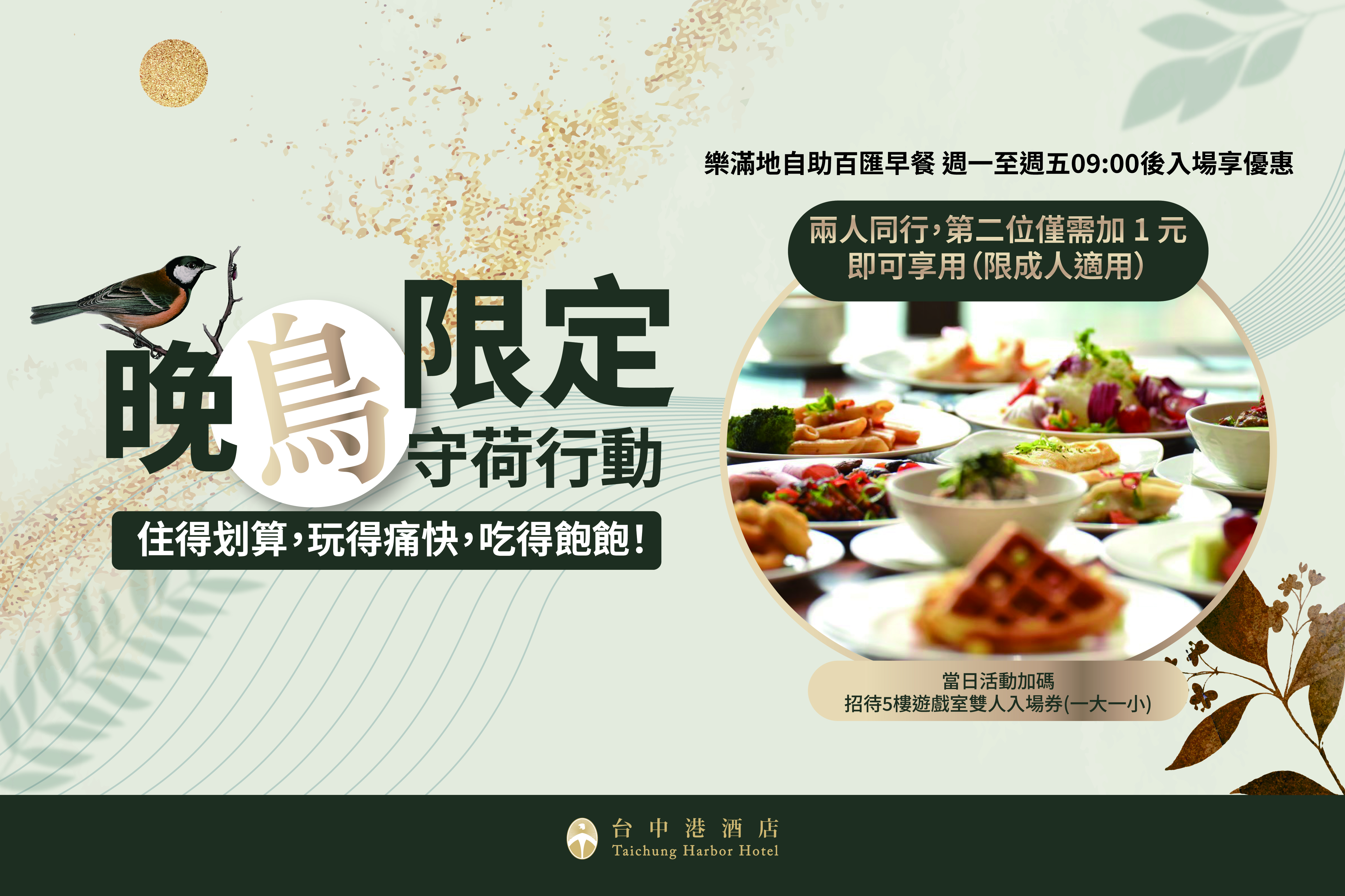 - 樂滿地西餐廳平日週一至週五9:00後用餐,早餐雙人同行享成人第二位+NT$1元多一客