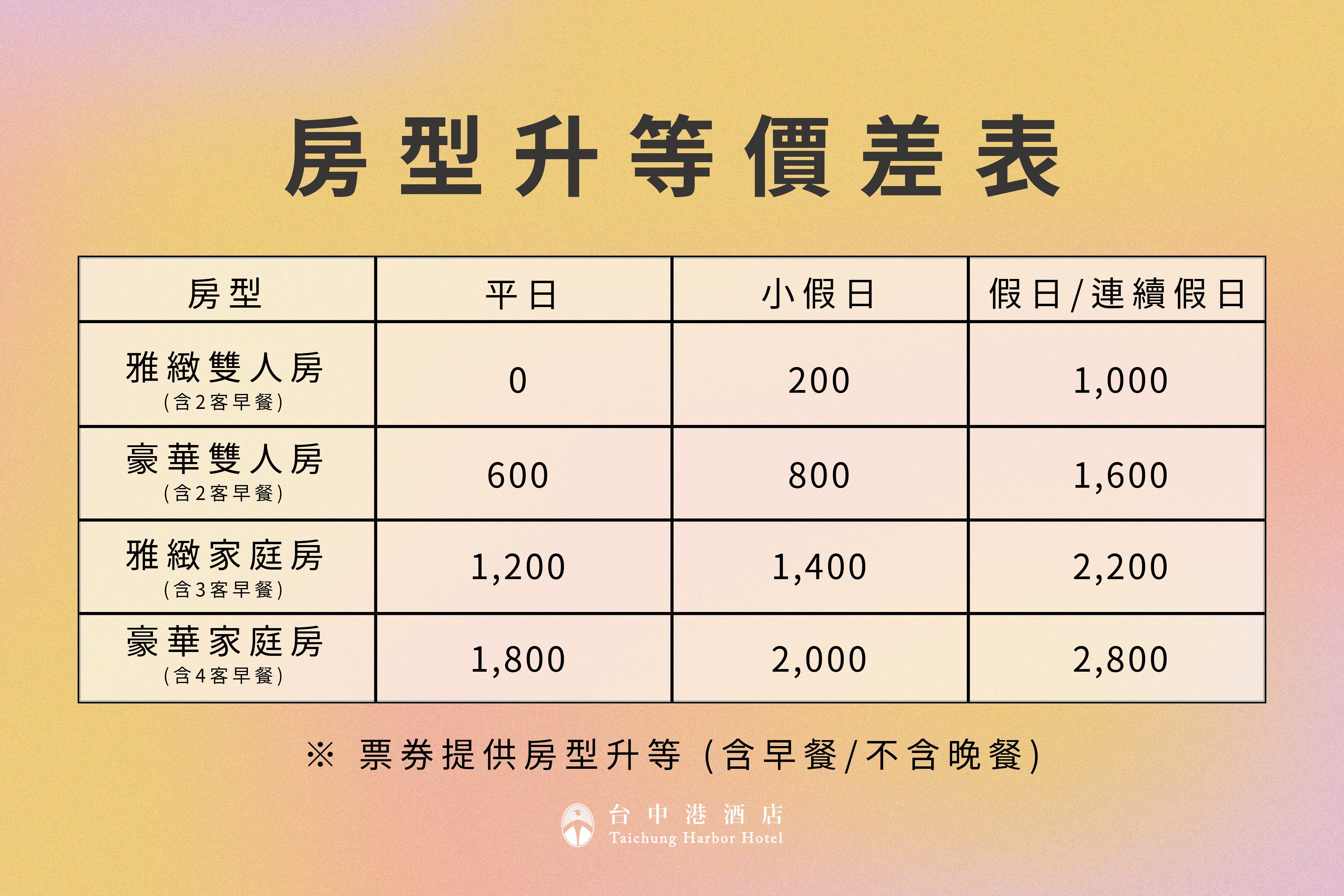 8. 本券可於優惠效期內依房型升等價差表加價升等,詳見官網公告。