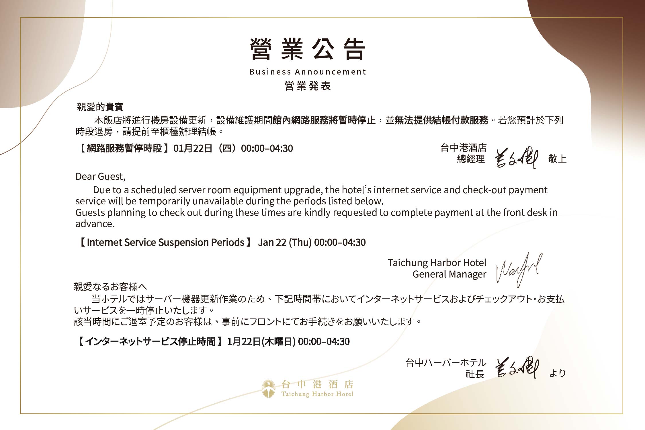 © 2022 Taichung Harbor Hotel.
