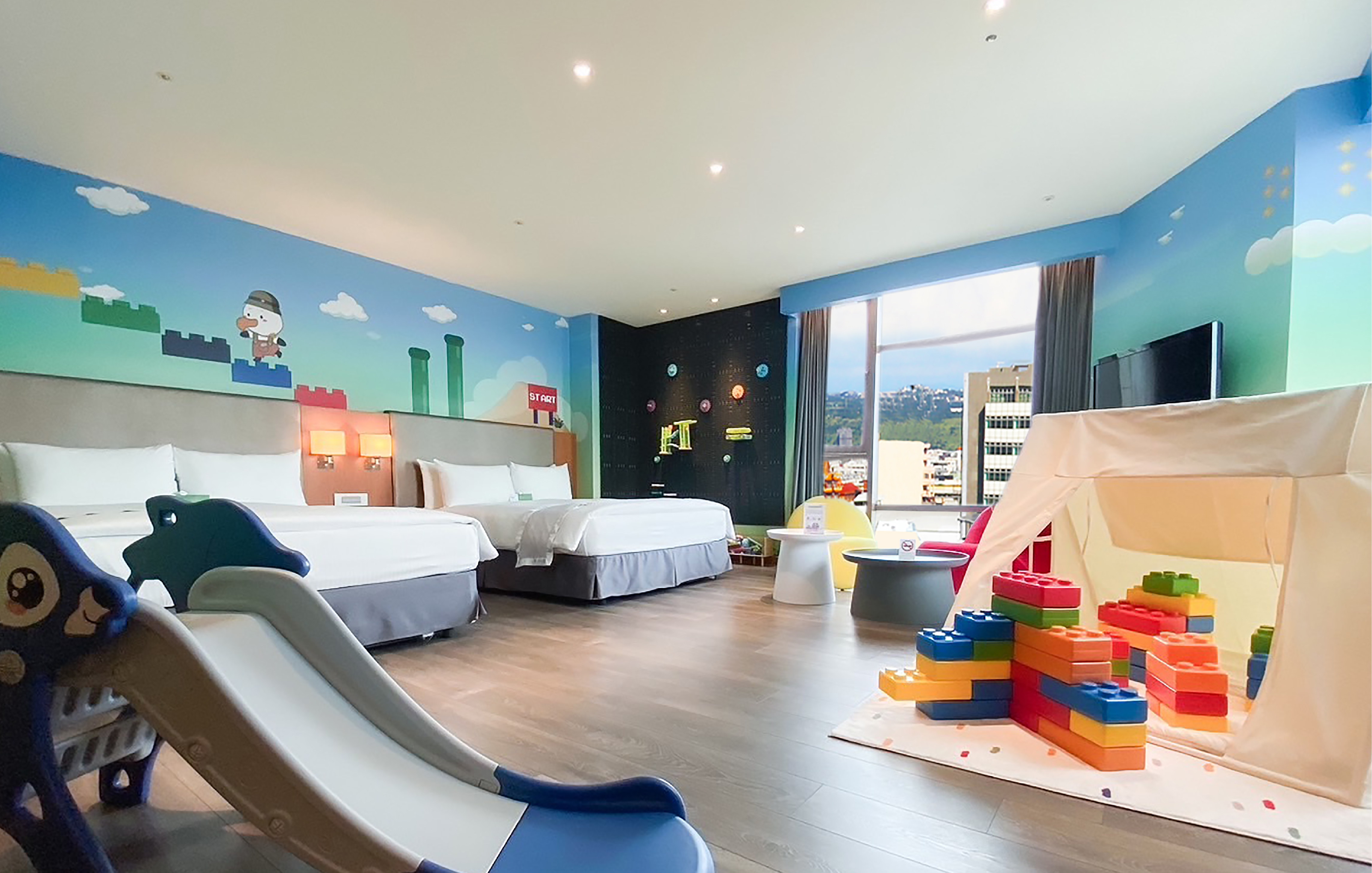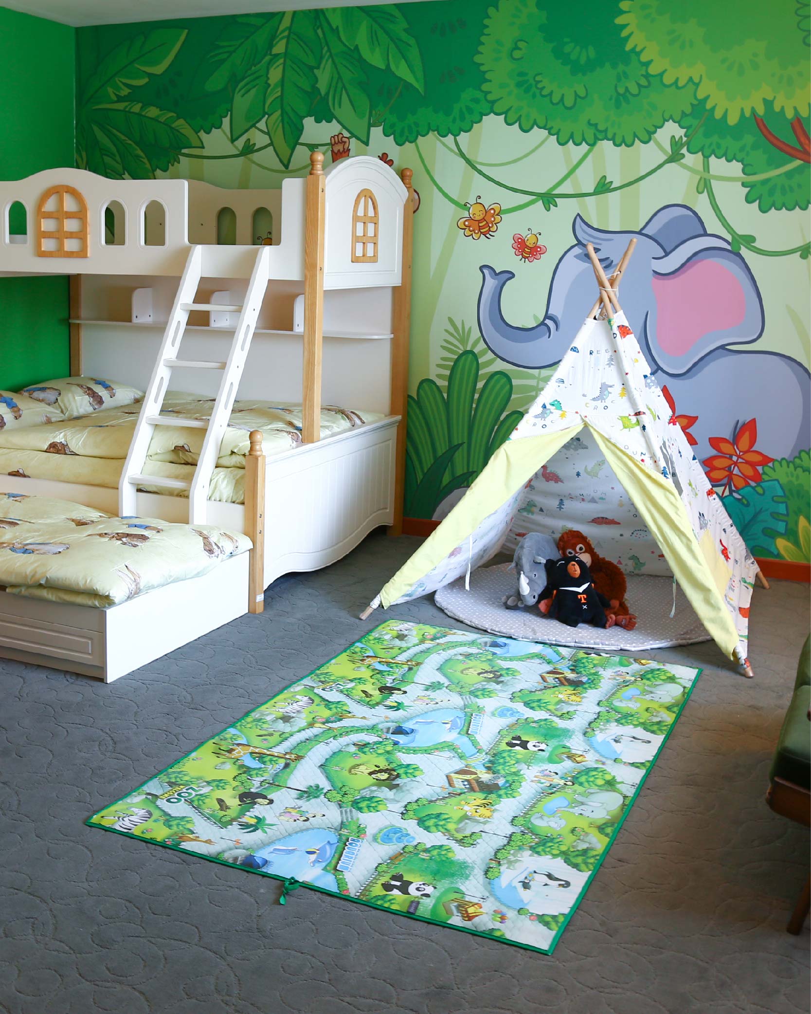 ▪ 1中床(160*203)、1主題上下舖床 (下層150*190;三抽通用拖床90*185) 床型上鋪無提供床墊